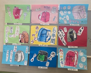 ランドセルの絵を描いて、メッセージを書きました。D階段踊り場に掲示してあります。