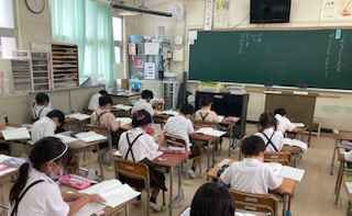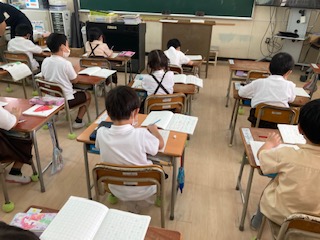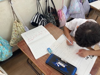 「したこと」を思い出して書きました。ノートに書いた下書きをプリントに清書しています。