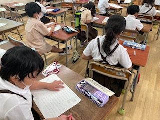 「ちがいはいくつ」の問題を考えた後、計算練習をして答え合わせをしました。答え合わせもとても速くできるようになりました。