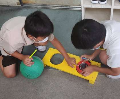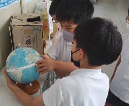 巻き尺のまわりの長さが41センチだったので、そこから予想をたてる児童もいました。