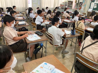 今日は〜をします。何をしますか?などのフレーズを練習したり、動画を見て、どんなことを言っているか推測したりしました。