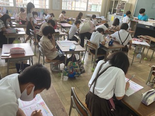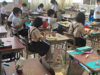 プリントをしたり、図工の作品作りの続きをしたり、答え合わせをしたりしていました。