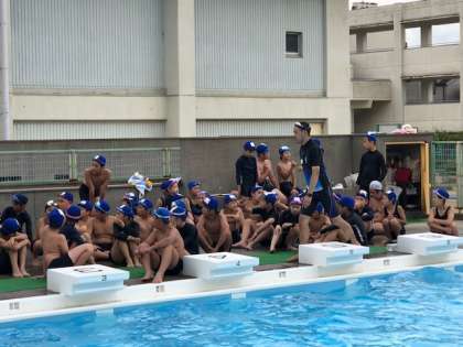 リズムに合わせて、楽しく体操し、クロールや平泳ぎをそれぞれの段階に応じて練習することができました。