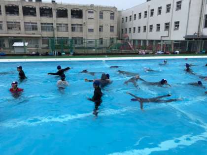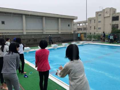 子ども達は「重い」「泳ぎにくい」と話していました。ペットボトルを使うと浮きやすいことが分かりました。