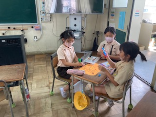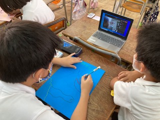2学期の係の仕事を進めています。家からオンラインで参加している子もいます。
