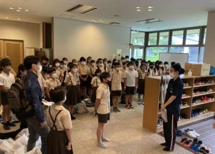 宿舎に到着後、開舎式を行いました。このあと食堂に移動して、昼食をとります。
