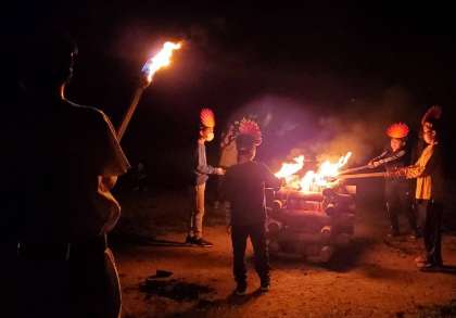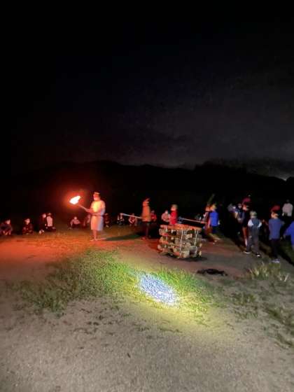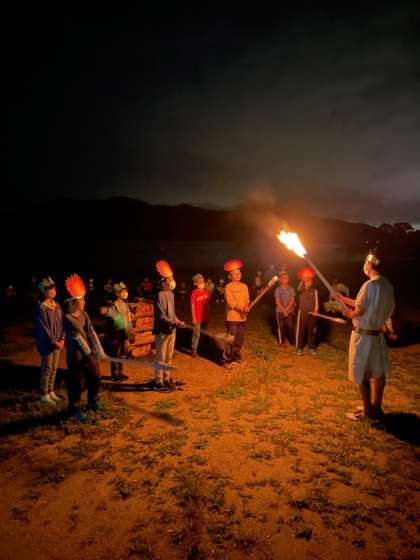 火の神、火の子たちの入場です。火の神から火を授かった子たちは、誓いの言葉を述べました。点火です!