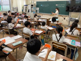髪を折って角にできる形(直角)について、学習しました。身の回りにたくさんあるので、次の時間は探していきます。