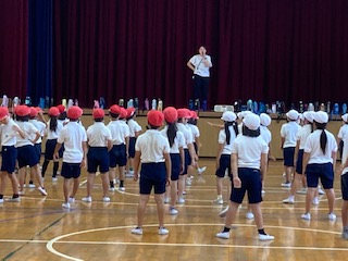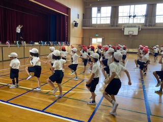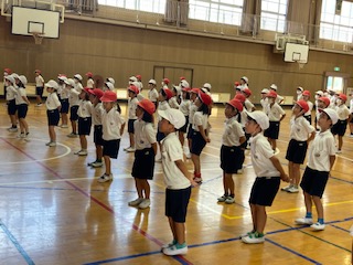 運動会の入場で踊るダンスの練習を始めています。暑いので、休憩をとりながらお茶もしっかり飲んで進めています。
