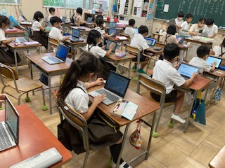 一人一台PCを使ってローマ字うちに挑戦したり、計算や漢字練習をしたりしました。