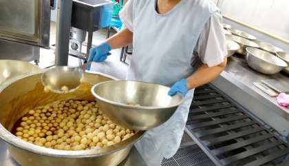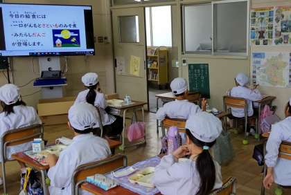 今年の9月10日は十五夜です。給食では一足先に月見の献立を用意しました。一口がんもと里芋のみそ煮、牛肉と野菜の炒め物、みたらし団子を組み合わせました。初めてみたらし団子を食べた児童も美味しいと喜んでいました。