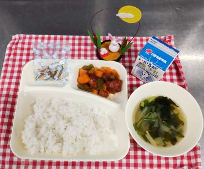 今日は酢豚、中華スープ、アーモンドフィッシュ、ご飯、牛乳でした。