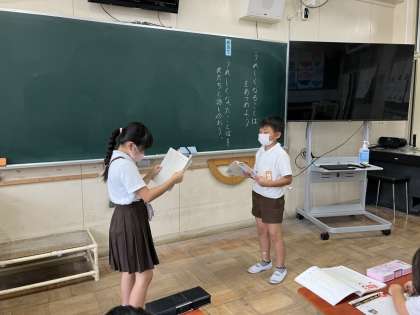 うれしくなることばを集め、友達と交流しました。会話が続くように相槌を打つなど、聞き方も工夫しました。