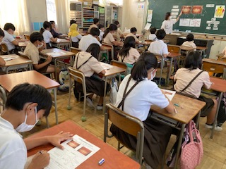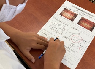 歯科衛生士さんに来校していただき、歯と口の健康についていろいろ教えていただきました。正しい歯磨きをすると、歯並びも良くなり、体も元気になることを学習しました。