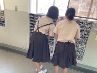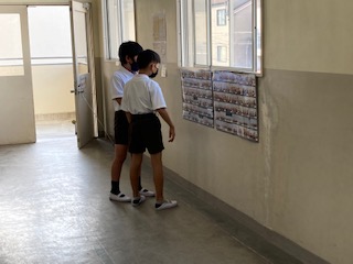 2階職員室前に、写真を掲示しています。懐かしそうに見る5年生。来年はこんなことをするんだと興味深く見入る4年生です。