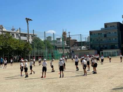 運動会のダンスの練習です。きれいな円の隊形になる練習をしています。大きな円はなかなか難しいです。