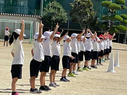 運動会のダンスの練習です。楽しそうに踊ってます。ポーズも決めるよー!との先生の言葉で、みんなでピシッと揃えるのを頑張っています。