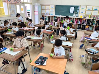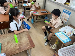 ペアで、『これは何時でしょう』と問題を出し合いました。