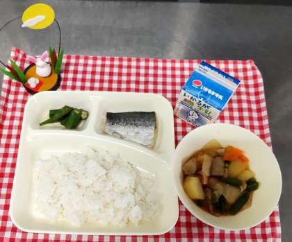 今日は、さごしの塩焼き、豚肉とじゃが芋の煮もの、オクラの炒めもの、ご飯、牛乳でした。