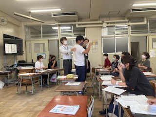 子どもの思考の流れを止めない発問や板書の工夫など、わかりやすくていねいに指導講評していただきました。