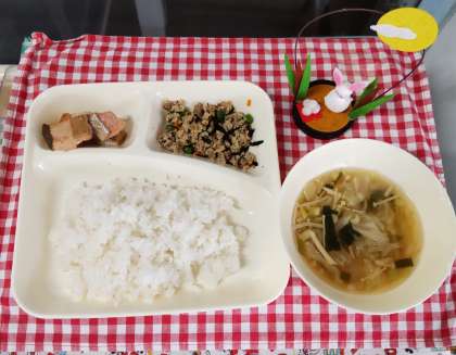 今日はさけのつけ焼き、五目汁、高野豆腐の炒り煮、ご飯でした。