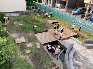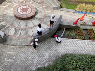 天気の良い日は、休み時間子どもたちが虫や草花探しに夢中です。コオロギやスズムシの音も聞こえてきます。子どもたちにとって、癒しの場となっています。