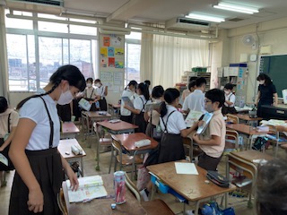 たくさんのペアとお散歩交流です。何が好きか、どうして好きなのかを英語で交流しました。