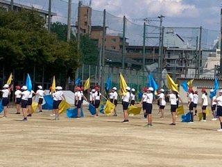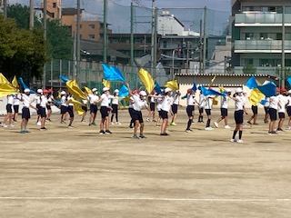 運動会で披露するフラッグの動きが大体出来上がってきました。小学校最後の運動、一人一人の、思いのこもった力強い動きと全体としての迫力ある動きが楽しみです。