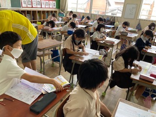 主語と述語を見つける練習プリントをしました。なかなか難しいですね。新しく習った漢字も練習しました。
