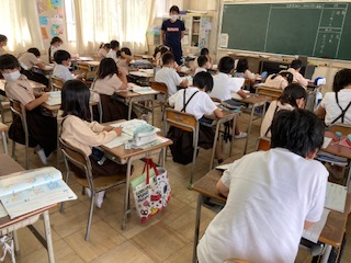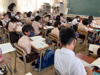 山場を考えて物語を作っています。教科書の三つのパターンから一つを選び、そこから設定や展開、山場を考えています。