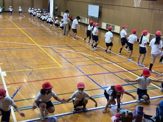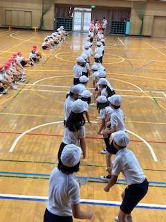 運動会練習の最終日です。今まで学習してきたことを思い出し、一生懸命踊ったり、綱引きの隊形移動を行なったりしました。