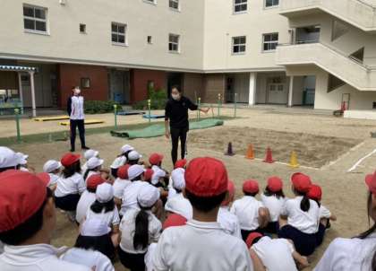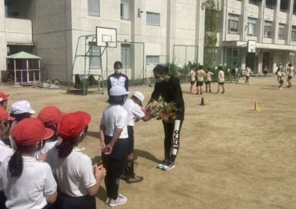 3時間目には、4年生に立ち幅跳びや走り方の実技指導をしていただきました。筋肉を伸ばしてから運動をすること、足や腕の動かし方、場がなくても工夫して体を動かすこと等、運動能力を向上させるために大切なことを学ぶことができました。