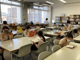 静かに自分が選んだ本を読んでいます。