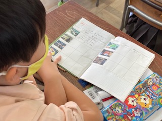 お店の工夫が、店やお客さんにとってどう良いのか考えました。近くのスーパーに行って、リサイクル品回収の場所などを写真で撮り、学習に活用しています。