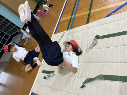 上手に飛ぶには足を上げることや両手をしっかりとつけることを知りました。