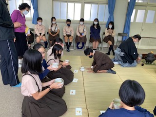 和の文化体験第二弾は、茶の湯です。表千家のS先生の門下の方々に教えていただきました。旭区更生保護女性会の皆様に、今回もお手伝いいただきました。