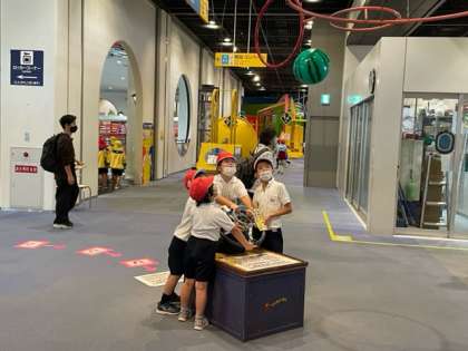 人が入れるシャボン玉、不思議な浮くボール、力を合わせてエアーシュート!5階には思わずやってみたくなる楽しい展示やワークショップがあります。