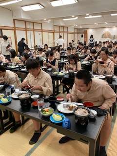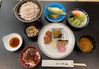 伊勢うどん、手こねすしなど名物をはじめ、たくさんテーブルに並んでいます。しっかり食べて、ごちそうさまをしました。