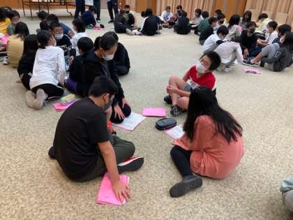 21時より全員で反省会をしました。活動班で、今日1日を振り返って、良かった点、明日から気をつけたいことなどについて話し合いました。