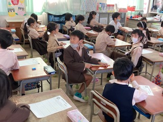 友達の作品の良いところを見つけて知らせます。どういうところが良いのかすてきなのか、ポイントを先生から聞いています。友達の作品の良いところをたくさん見つけることができたかな?