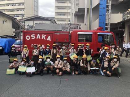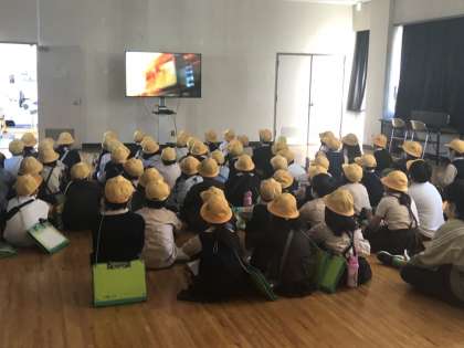 昨日、旭消防署に見学に行きました。最初に防災についてのビデオを見た後、訓練の様子などを見せてもらいました。教科書だけではなく、実際に見たり聞いたりすると、実感が湧き、生きた学習となりました。