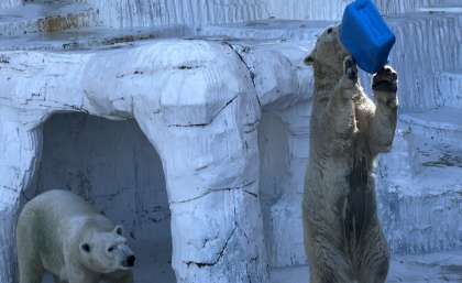 ホッキョクグマが、立ち上がって歓迎してくれました!あまりの迫力に「わー!」と歓声があがりました!
