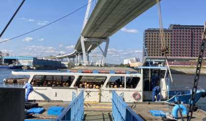 港区築港と此花区桜島を結ぶ天保山渡船場から、渡船に乗りました。