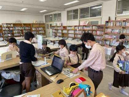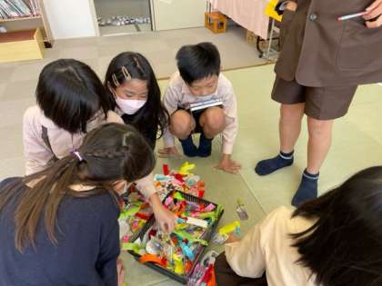 今日は読書週間最終日です。スタンプが集まり、お気に入りのしおりを選んでいます。