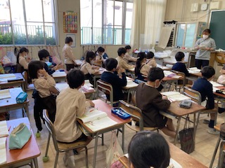 小ねずみをすぐに食べなかった、たまの気持ちを考えました。教科書本文をもとに、自分の考えを発表しました。
