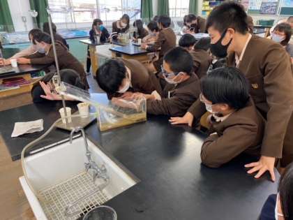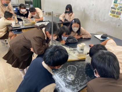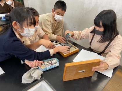 大きさごとに固まって長い年月が経つと、岩石になることも知りました。岩石の標本を見て確かめました。