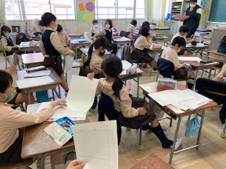 スーパーマーケットについて調べてわかったことを新聞にまとめています。