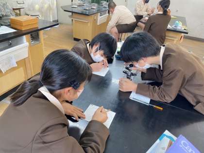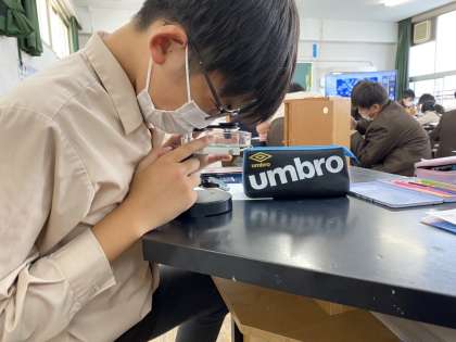火山灰と砂を解剖顕微鏡を使ってみました。角張っているのは、どちらなのか、何故丸くなっていないのかを考えました。