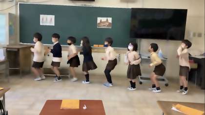 学習発表会に向けて講堂練習が始まりました。今日は立ち位置を確認した後、歌の練習をしました。教室練習では役割ごとに分かれ、台詞やジェスチャー、ダンスを練習しています。