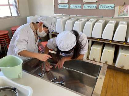 班で協力してつくりました。5時間目でしたが、おいしい!としっかり食べました。片付けも最後までていねいにしました。お家でも挑戦してみるといいですね。